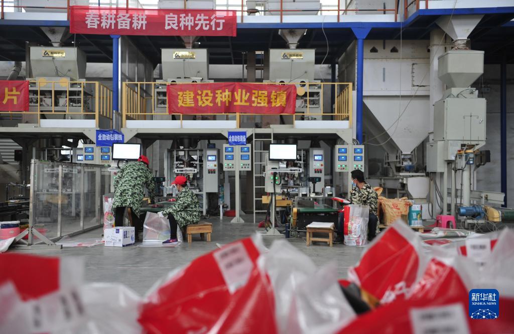 2月6日,在江西省南昌縣一家種業公司,工人將包裝好的種子裝袋。