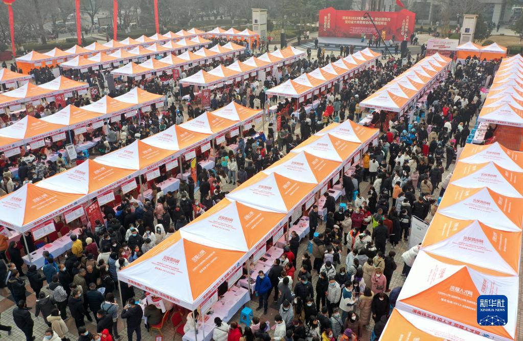 這是招聘會現場(無人機照片,2月7日攝)。
