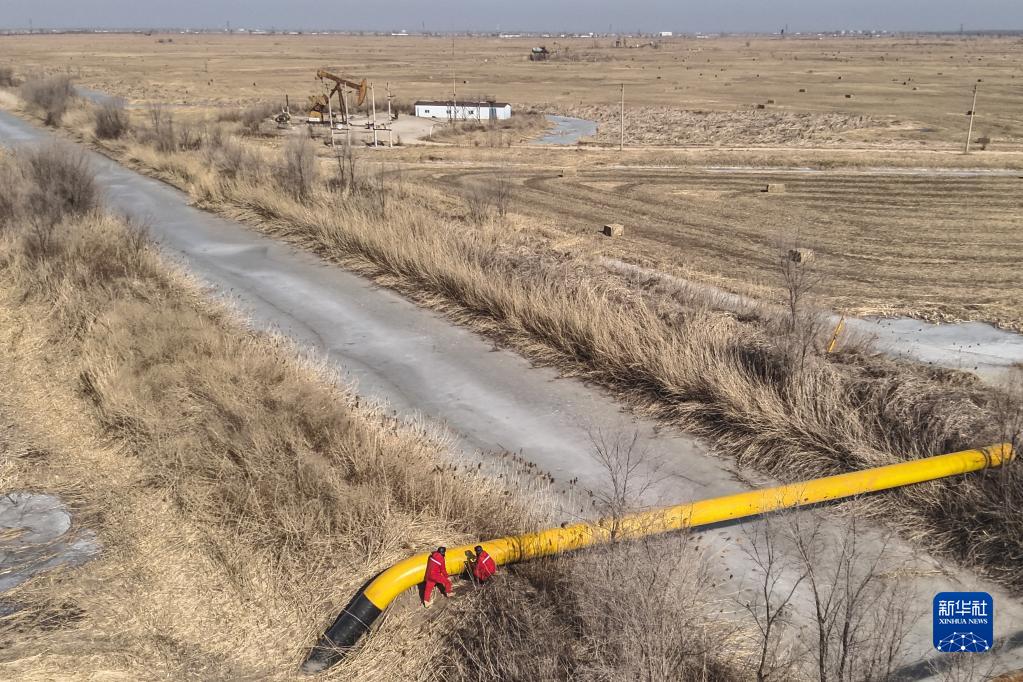 元宵節剛過,工人迎寒風、走冰面,在戶外對管線進行巡查,保障供氣安全。