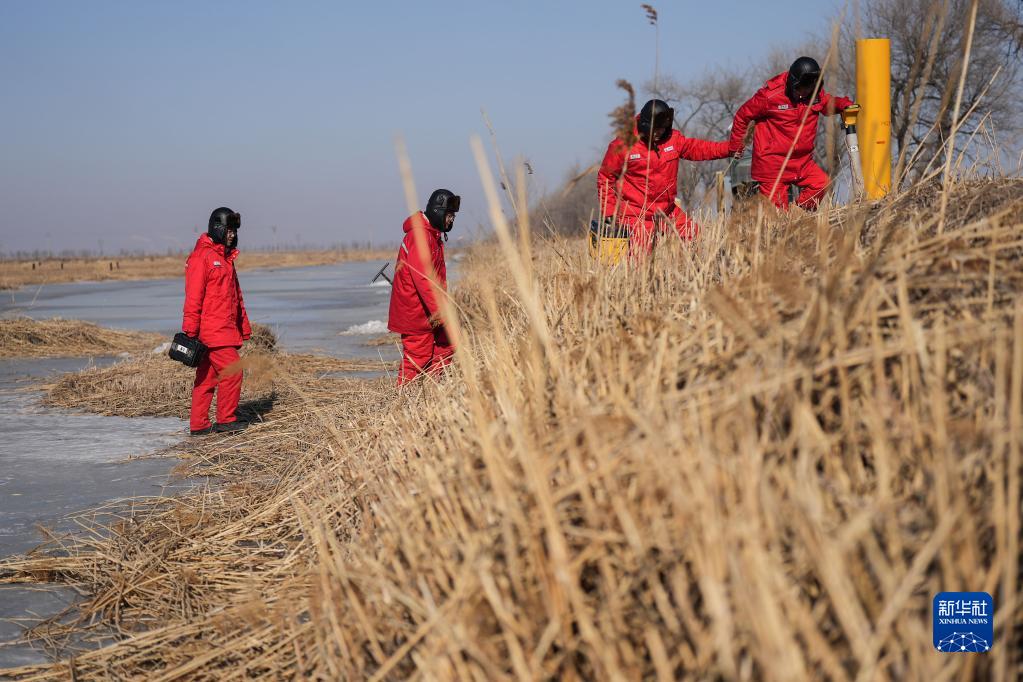 元宵節剛過,工人迎寒風、走冰面,在戶外對管線進行巡查,保障供氣安全。