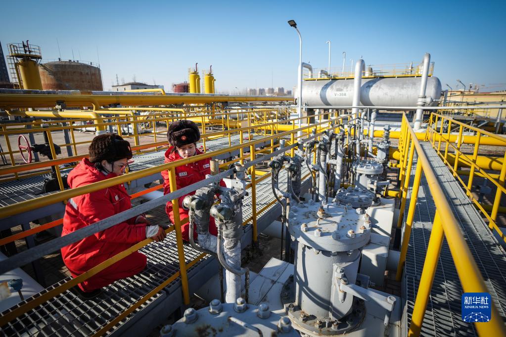 2月6日,中國石油遼河油田興隆臺輸氣分公司工人在檢查天然氣管道。