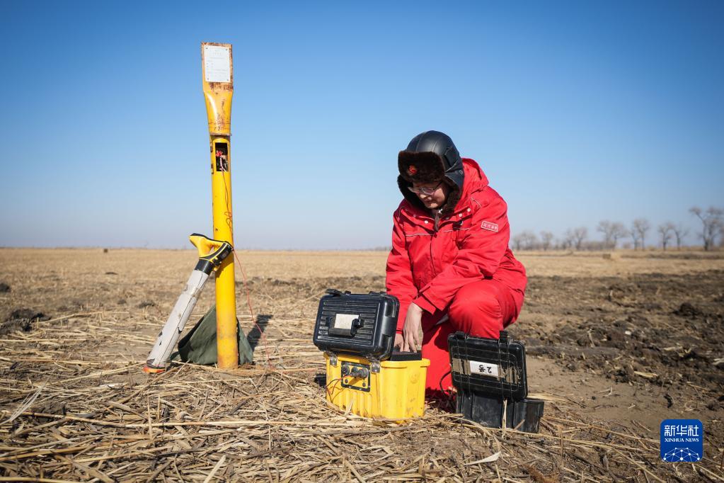2月6日,中國石油遼河油田興隆臺輸氣分公司巡線工人在調試管道測量設備。