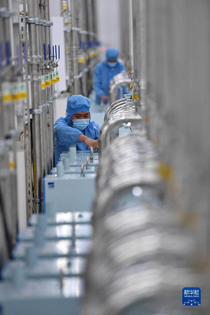 2月7日,在位于成都市雙流區的通威太陽能(成都)有限公司生產車間內,工作人員在檢修設備。
