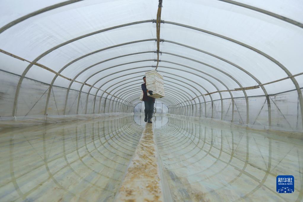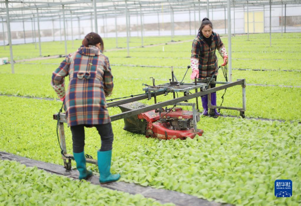 2月7日,在湖南省永州市道縣營江街道上汶村,村民在大棚里忙碌。