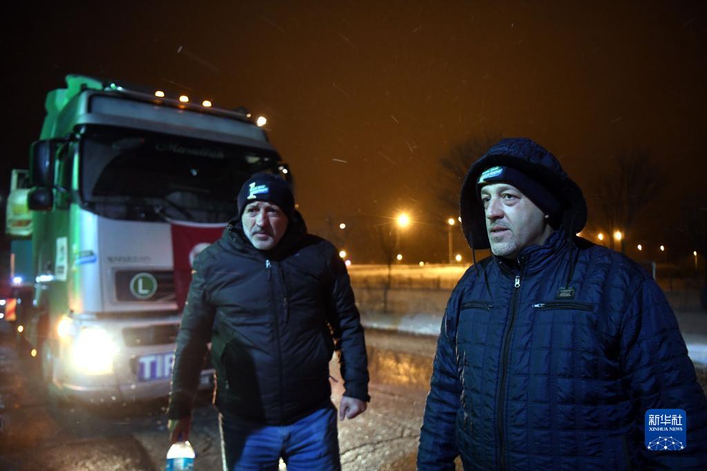這是2月6日晚在土耳其伊斯坦布爾至安卡拉公路上拍攝的支援災區人員。