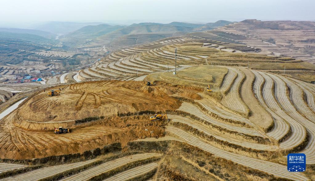早春時節,多臺大型機械設備在寧夏固原市西吉縣的梯田上為建設高標準農田忙碌作業。今年寧夏全區計劃新建和改造高標準農田93.7萬畝,重點向西海固地區傾斜,其中西吉縣今年計劃建設高標準農田25萬畝。