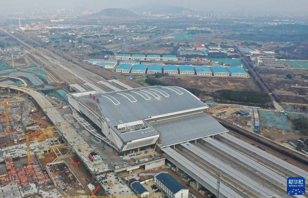 2月7日拍攝的江蘇南沿江鐵路江陰站站房(無人機照片)。