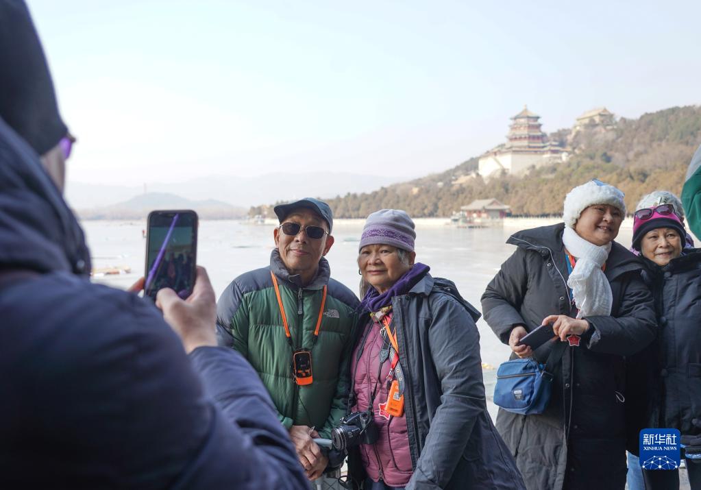 2月7日,香港“銀發族”們在北京頤和園拍照留念。
