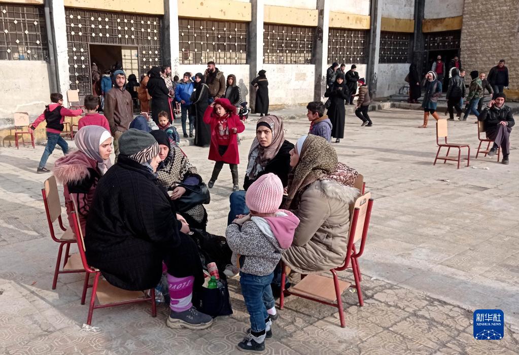 2月7日,受地震影響的人們在敘利亞阿勒頗省的一處安置點休息。