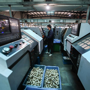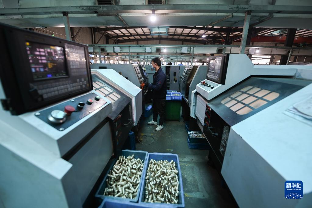 2月7日,在店口鎮的浙江銘仕興新暖通科技有限公司車間內,自動化機床在生產水暖零部件。
