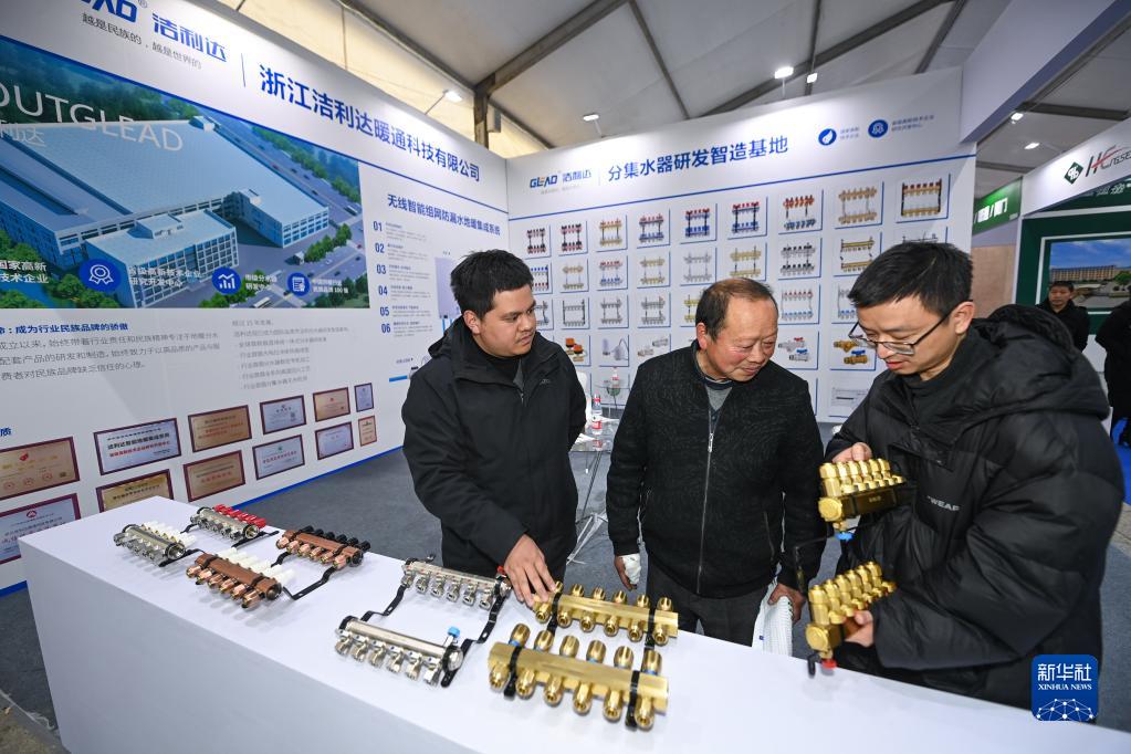 2月7日,在店口鎮舉行的中國(店口)水暖博覽會上,客商在查看企業產品。