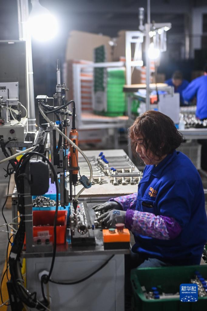 2月7日,在店口鎮的浙江潔利達暖通科技有限公司車間內,工人在生產線上加工產品。