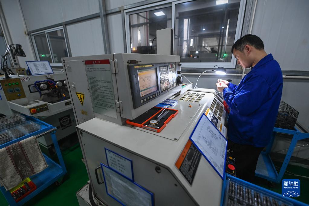 2月7日,在店口鎮的浙江潔利達暖通科技有限公司車間內,工作人員在自動化機床上加工產品。