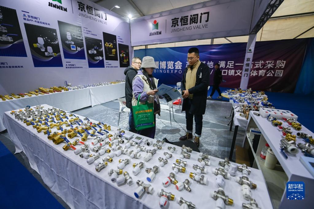 2月7日,在店口鎮舉行的中國(店口)水暖博覽會上,客商在查看企業產品介紹。