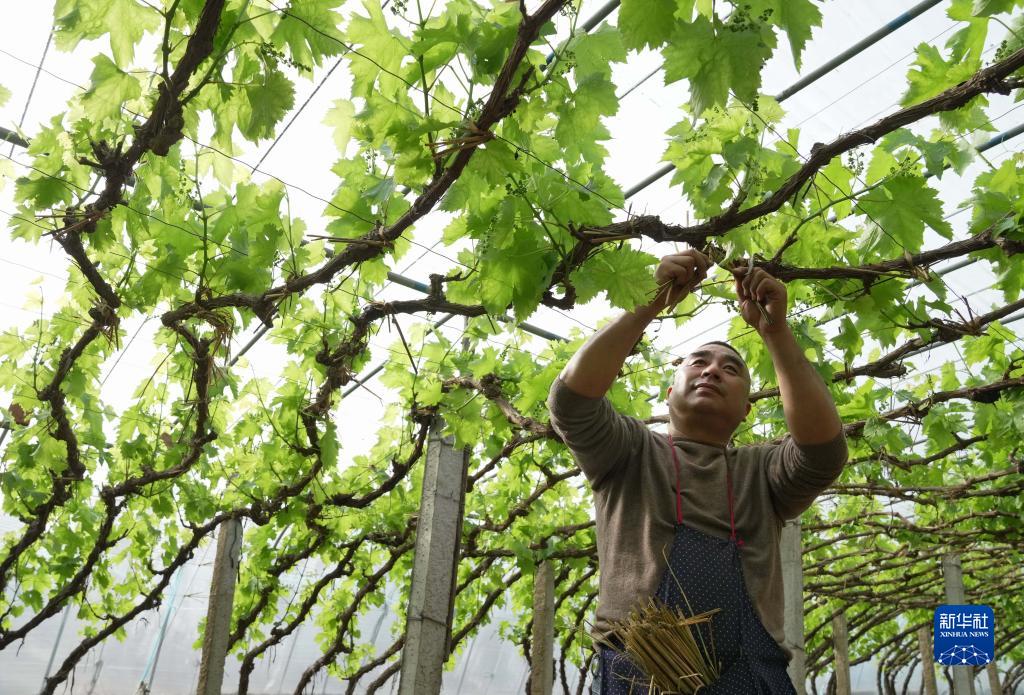 早春時節,素有“葡萄之鄉”美譽的河北省秦皇島市昌黎縣的果農搶抓農時,開始將大棚內的葡萄藤扶上架,進行掐蔓、疏果等管理。據介紹,目前該縣葡萄種植面積達5萬畝,年產值達3億多元。