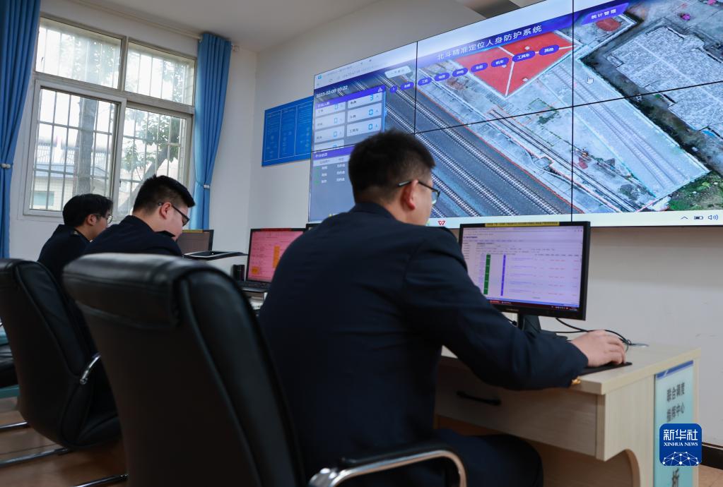 2月8日,工作人員在聯合調度指揮中心內通過監控查看北斗精準定位人身防護系統。