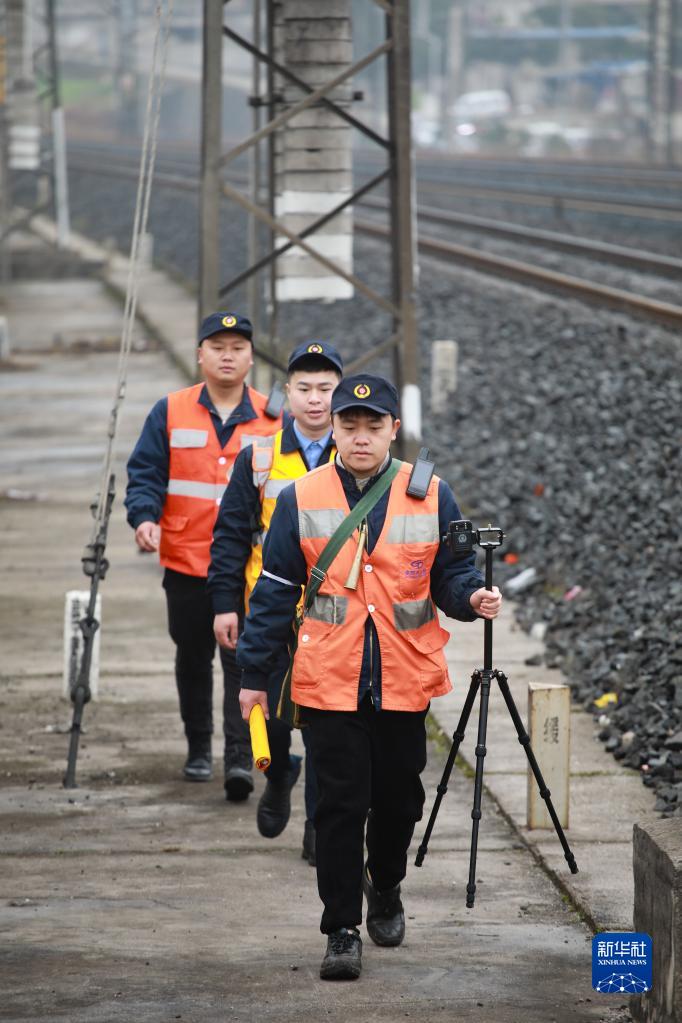 2月8日,貴陽電務段工作人員佩戴北斗防護系統設備前往作業地點。