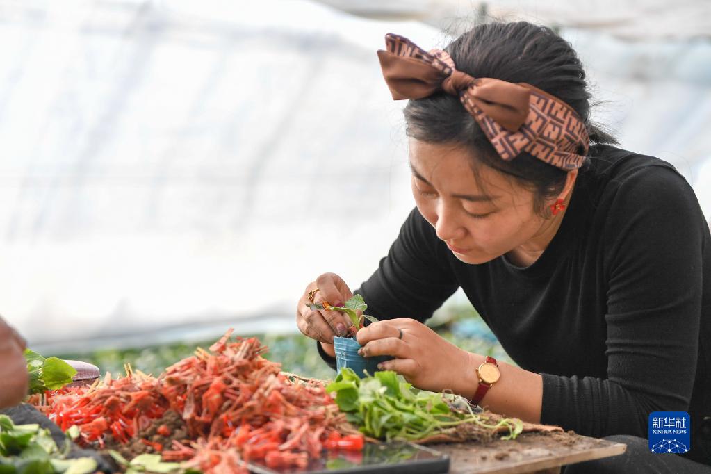 立春過后,氣溫回暖。在吉林省四平市梨樹縣果蔬大棚里,農民們搶抓農時,一派繁忙景象。近年來,梨樹縣積極挖掘“黑土地”資源,大力發展棚膜經濟,走出一條讓農民四季皆可創收的致富路。2022年,全縣各類棚膜面積超4萬畝。