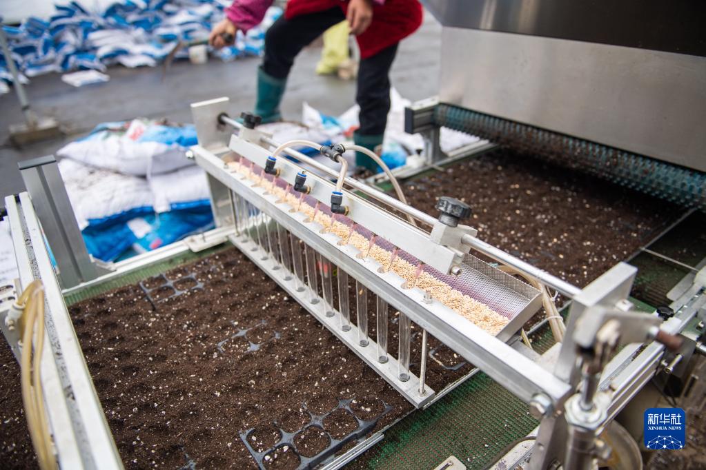 2月8日,在鼎城區國家現代農業產業園一處蔬菜育苗基地,一臺全自動播種機在作業。