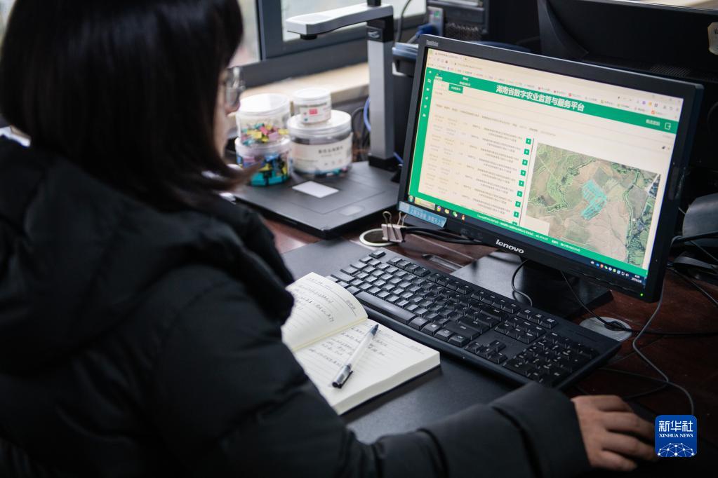 2月8日,在鼎城區農機事務中心,工作人員通過數字農業監管與服務平臺查看全區智慧農機狀態。