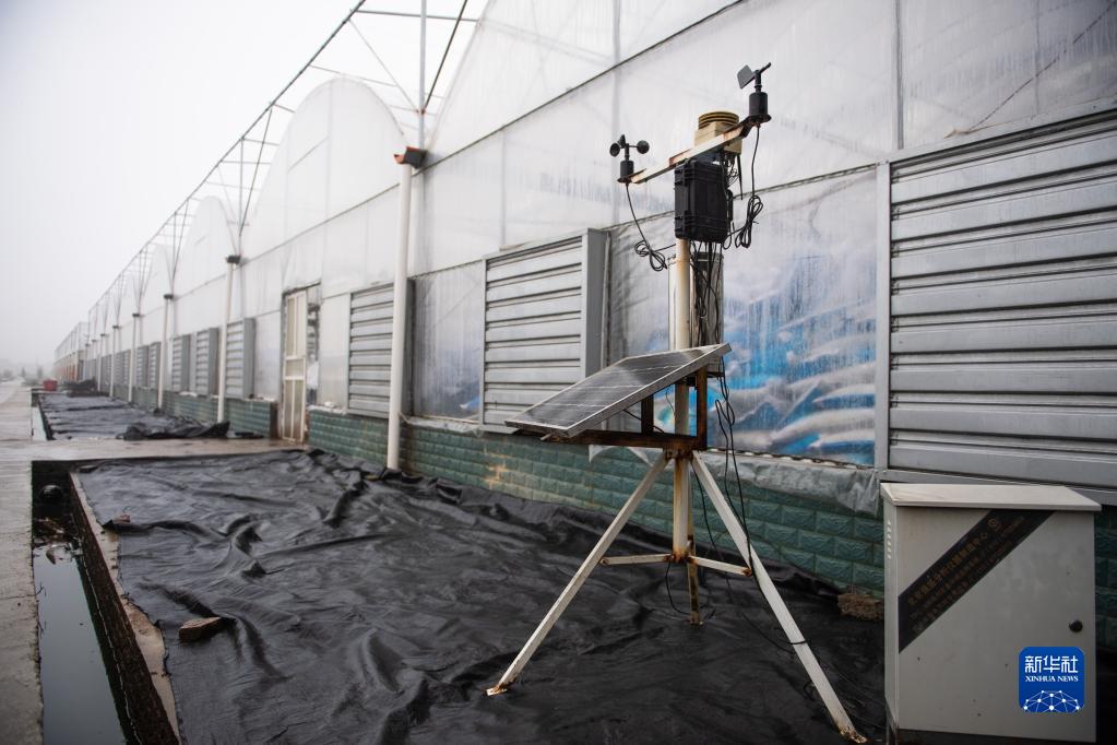 這是2月8日在鼎城區國家現代農業產業園一處蔬菜育苗基地拍攝的氣象信息收集系統。