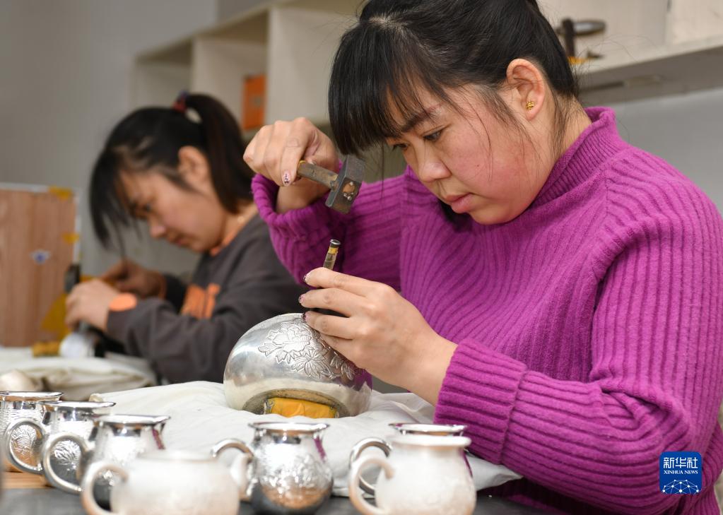近年來,河北省滄縣深入挖掘特色文化資源,積極推動傳統制銀技藝走規?;a經營道路,形成集設計、生產、加工、銷售于一體的特色銀器產業,銀器制品暢銷海內外,有效帶動當地群眾增收。