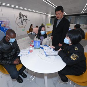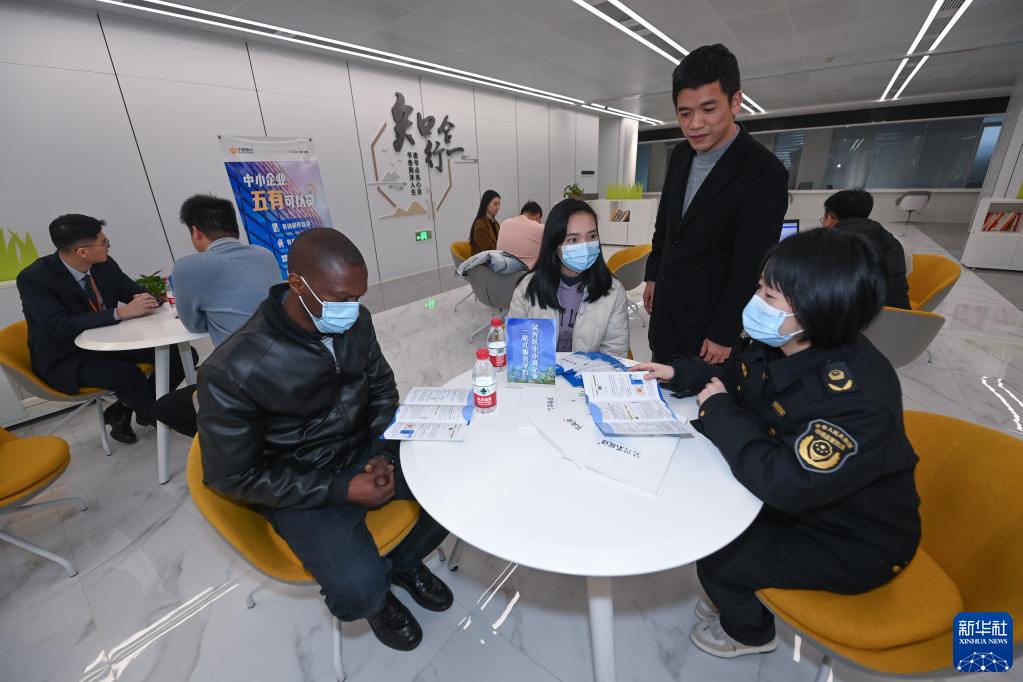 2月8日,在湖州市吳興區政務服務中心的中小微企業一站式服務平臺,市場監管、人力社保、銀行、招商局等多部門共同為企業提供創業、就業、人才和金融等政策解讀及相應政務服務。