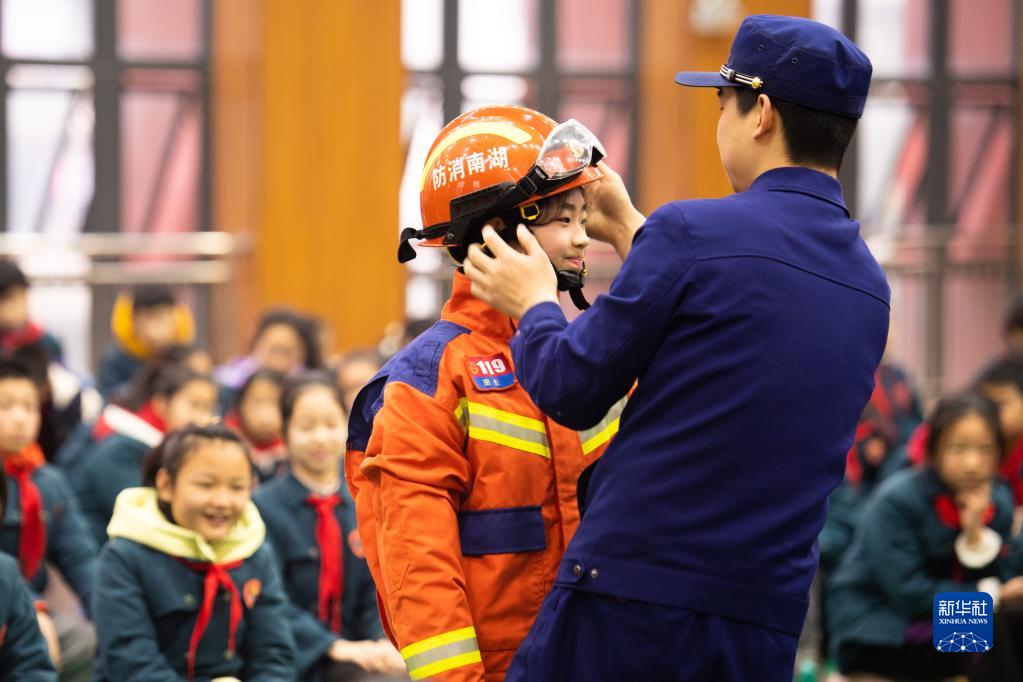 當日,湖南省常德市消防救援支隊在常德市武陵區第一小學舉行“開學第一課 消防安全進校園”活動。消防員為學生講解日常防火常識,組織滅火器使用、高空救援等演練,強化學生的安全保護意識。