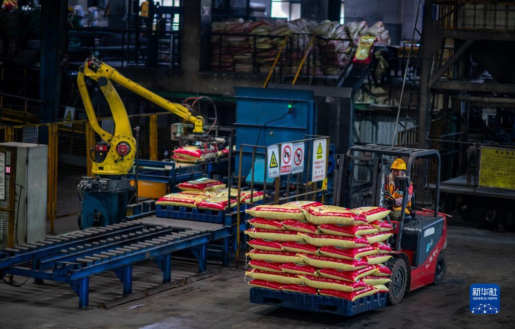 2月8日,工人在云天化集團天安化工磷肥制造中心生產線上進行運輸作業。