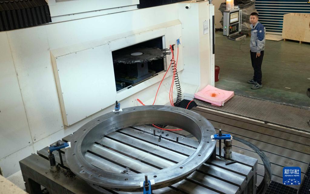 2月8日,在河北滄州渤海新區黃驊市一家模具生產企業,工人操作銑床加工模具。
