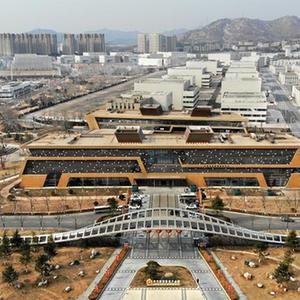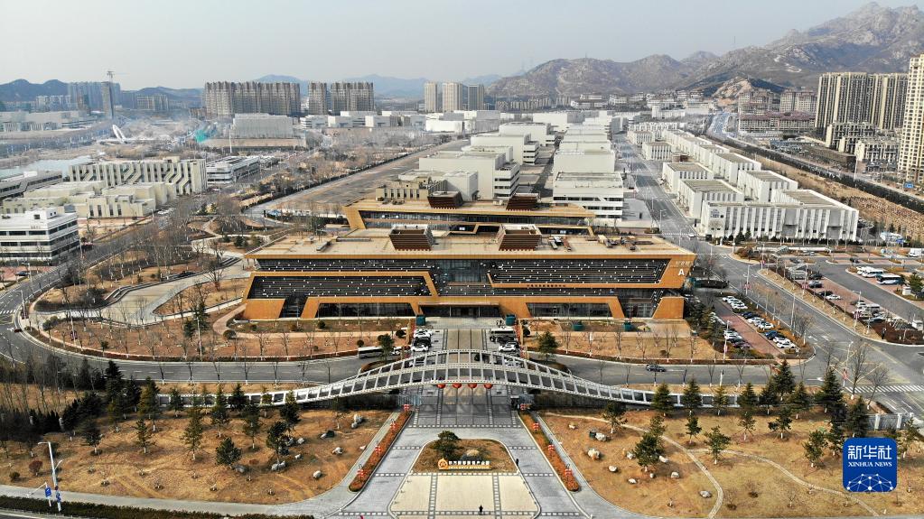 位于青島西海岸新區的青島東方影都影視產業園(2月8日攝,無人機照片)。