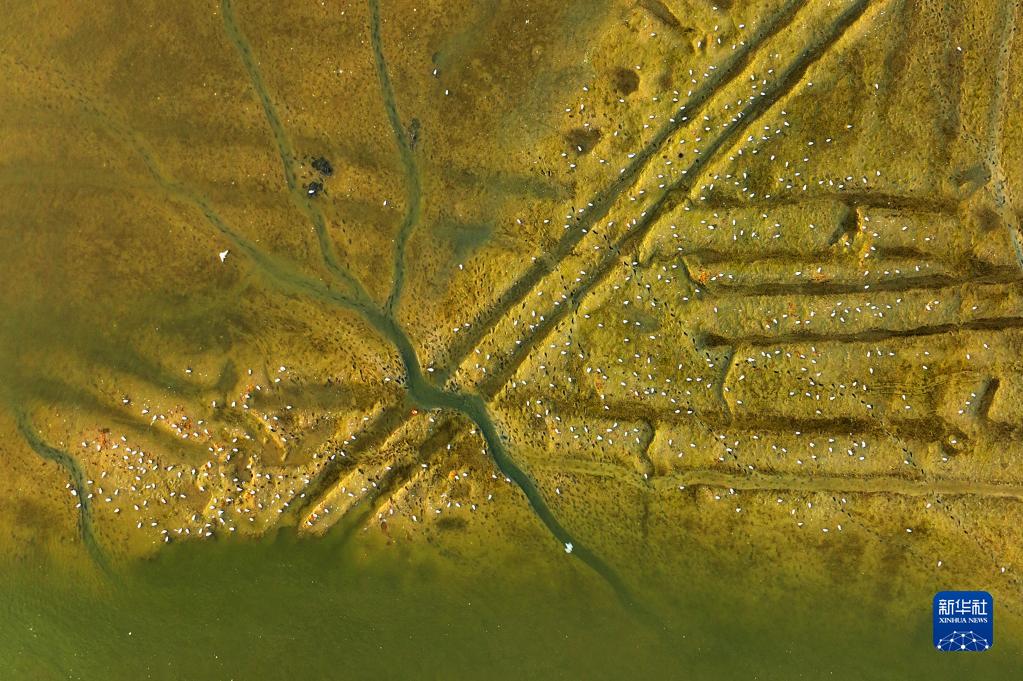 近日,在山東省青島市城陽區流亭街道墨水河入??跐竦?,各種水鳥或趕潮覓食或翩躚飛翔,繪就一幅美麗的生態畫卷。