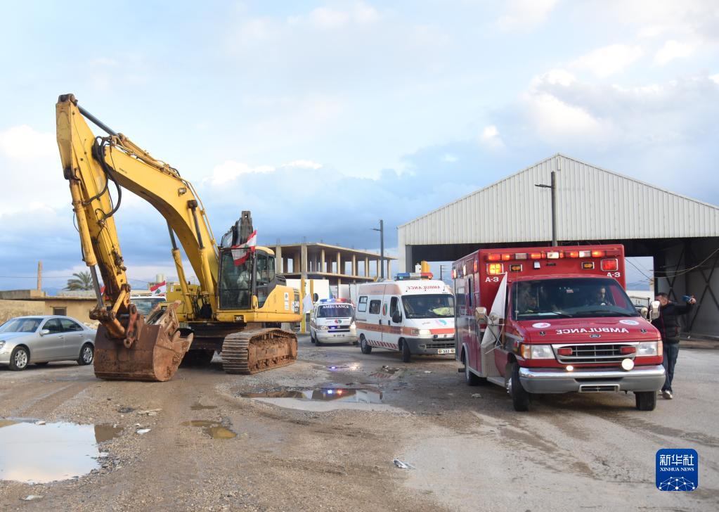 2月8日,黎巴嫩救援車輛準備通過邊境的阿里達口岸進入敘利亞。