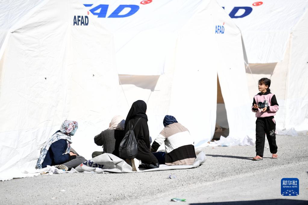 2月8日,在土耳其哈塔伊的體育場,受地震影響的人們在臨時帳篷外休息。