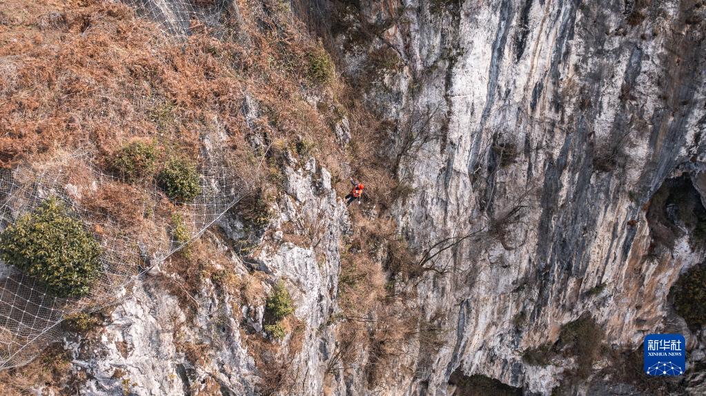 滬昆鐵路貴州段地勢險峻,途經的烏蒙山脈多屬喀斯特地貌,鐵路沿線高山林立,溝壑縱橫,不時有落石崩塌掉落。為確保列車安全運行,中國鐵路成都局集團公司六盤水工電段的職工登山越嶺、搜山掃危,在高山之上守護著穿行群山的春運列車。