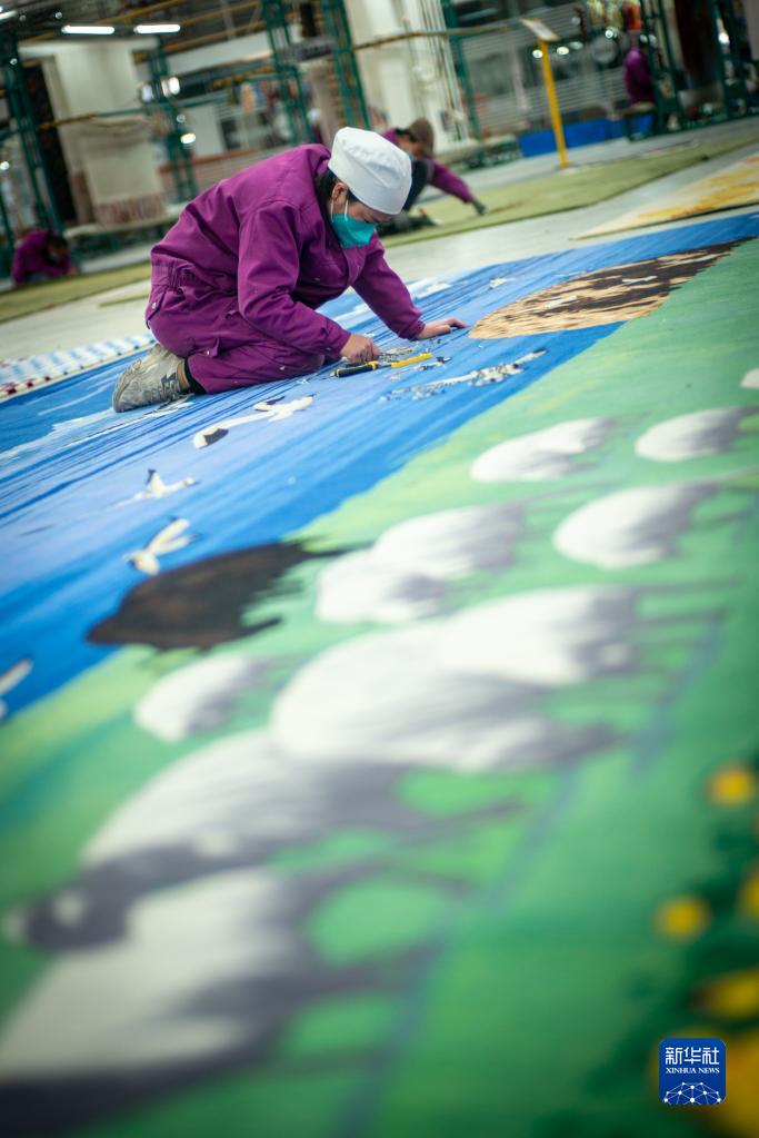在圣源地毯集團有限公司生產車間,一縷縷高原優質的牛羊毛經過工人編結、栽絨、紡織后,被制作成為一張張毛質優良、技藝獨特、圖案典雅的地毯。