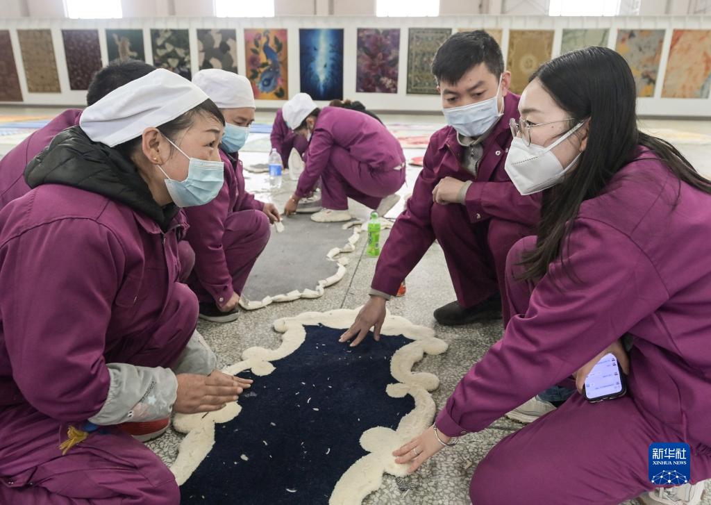 在圣源地毯集團有限公司生產車間,一縷縷高原優質的牛羊毛經過工人編結、栽絨、紡織后,被制作成為一張張毛質優良、技藝獨特、圖案典雅的地毯。