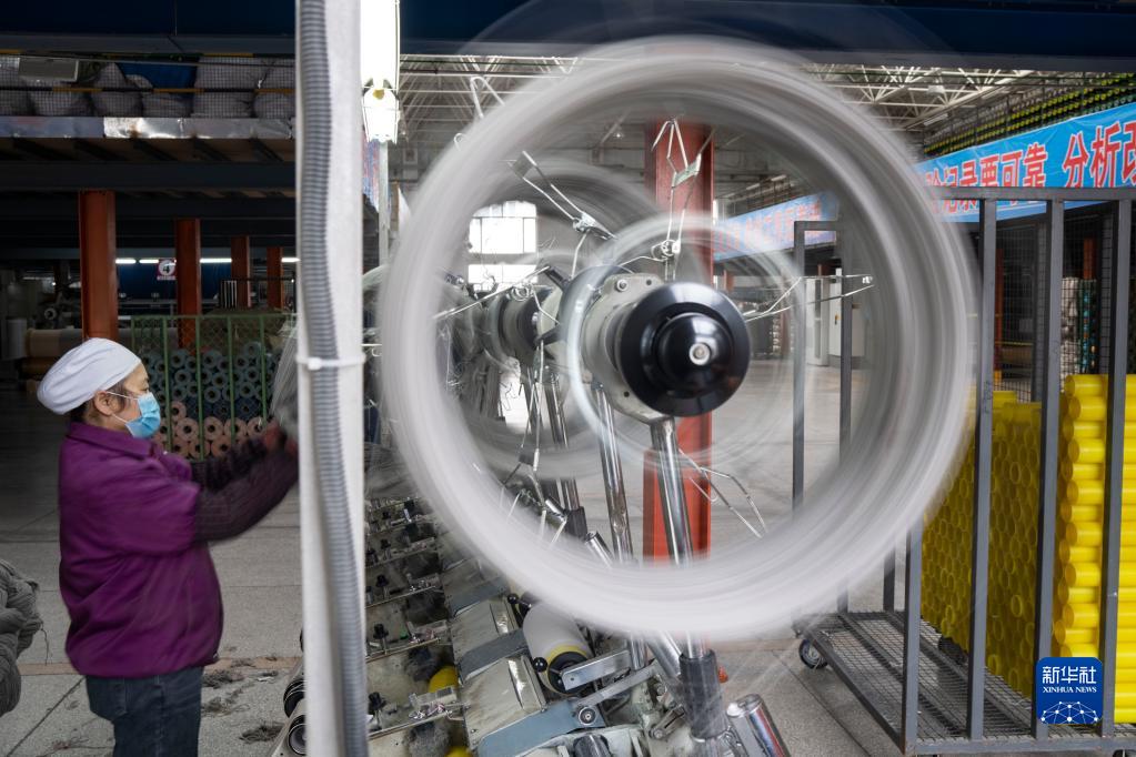 在青海省西寧市圣源地毯集團有限公司生產車間,操作工制作紗線筒(2月1日攝)。