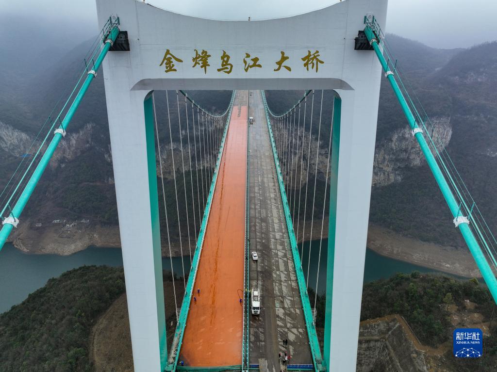 這是2月3日拍攝的貴州金烽烏江大橋(無人機照片)。