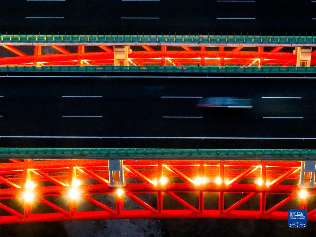 夜幕下的大發渠特大橋(2月2日攝,無人機照片)。