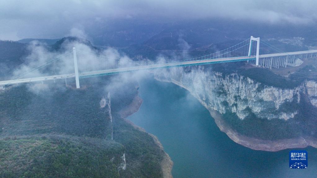 這是2月3日拍攝的貴州金烽烏江大橋(無人機照片)。