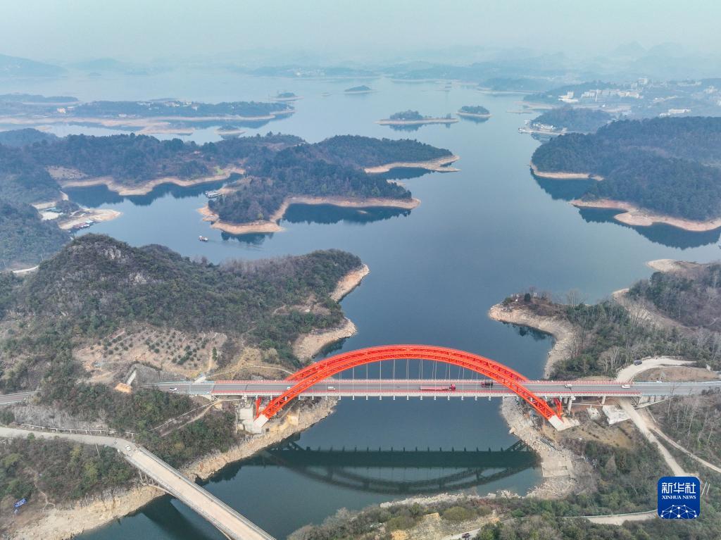 這是2月1日拍攝的貴州花魚洞大橋(無人機照片)。