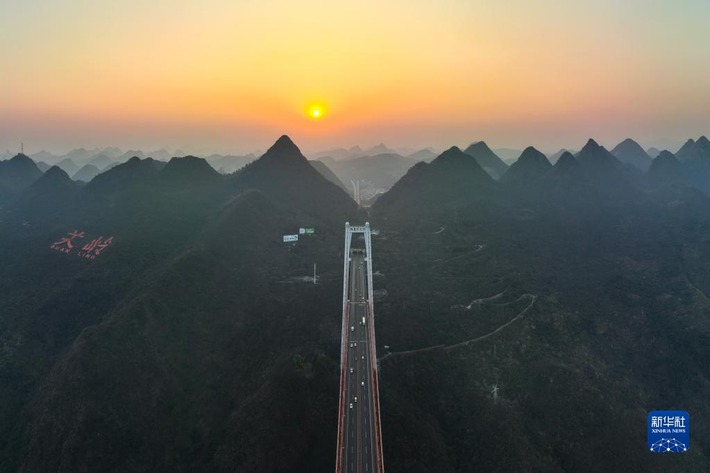 2月1日拍攝的貴州壩陵河大橋(無人機照片)。