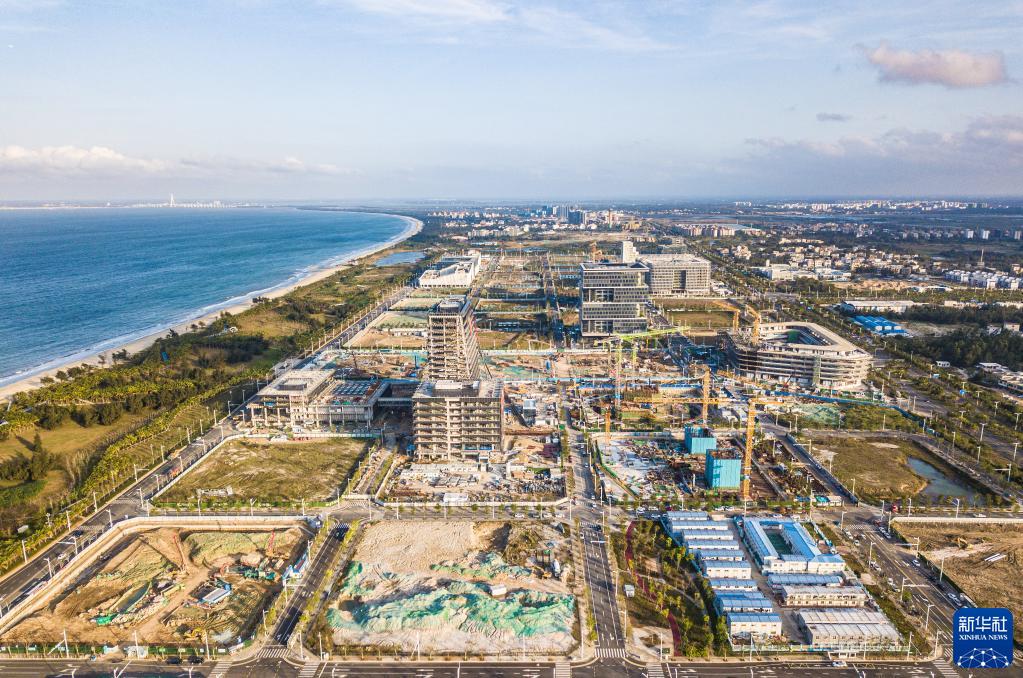 發展中的海南自貿港重點園區——??诮瓥|新區起步區(2月8日攝,無人機照片)。