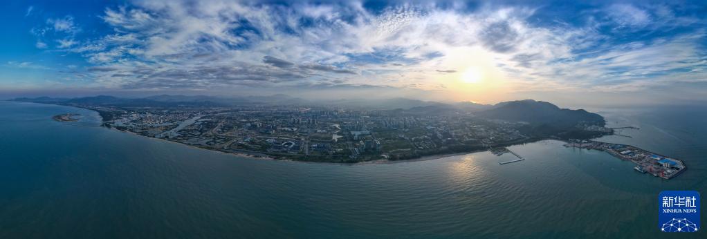 航拍晨光中的海南三亞崖州灣科技城(2022年10月17日攝,無人機照片)。