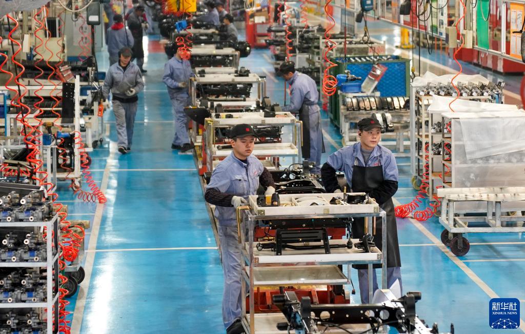 2月7日,工人在慶鈴汽車(集團)有限公司的商用車整車生產線上工作。