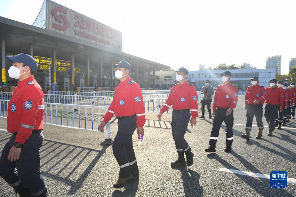 2月9日,深圳公益救援隊隊員從深圳灣口岸出發。