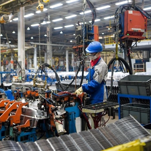 2月9日,工人在奇瑞汽車股份有限公司鄂爾多斯分公司生產車間內作業。