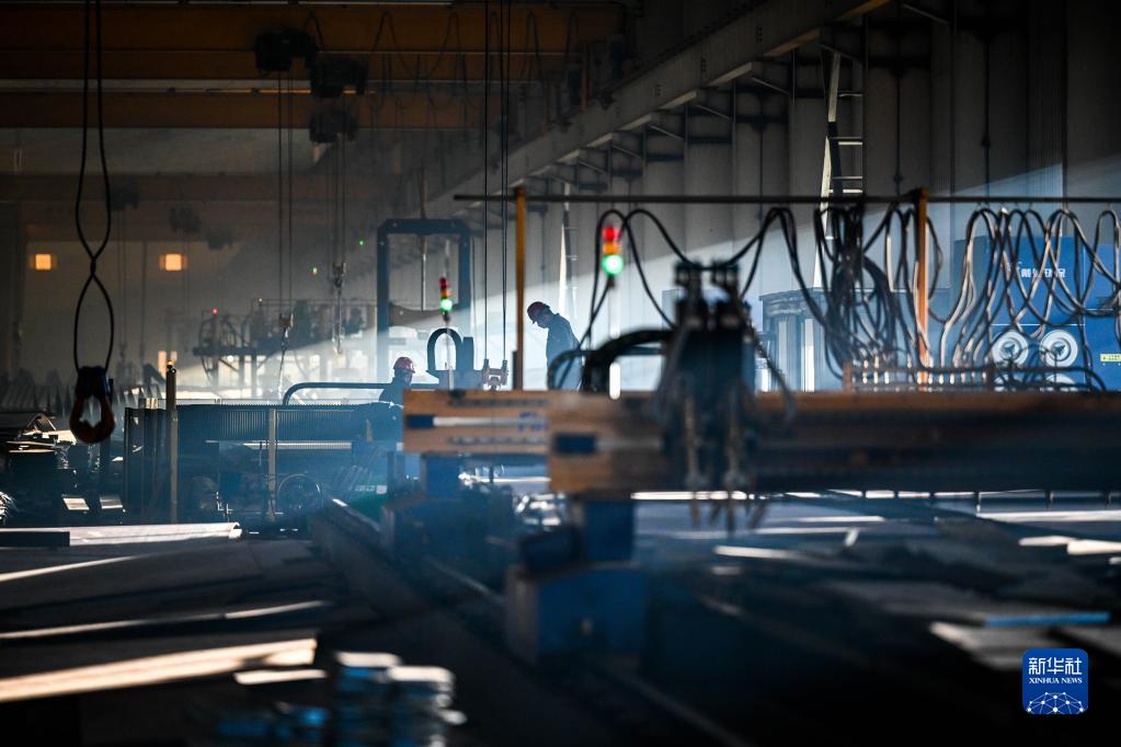 2月2日,在內蒙古通遼市科爾沁區龍馬新能源裝備制造產業園,工人在生產線上工作。