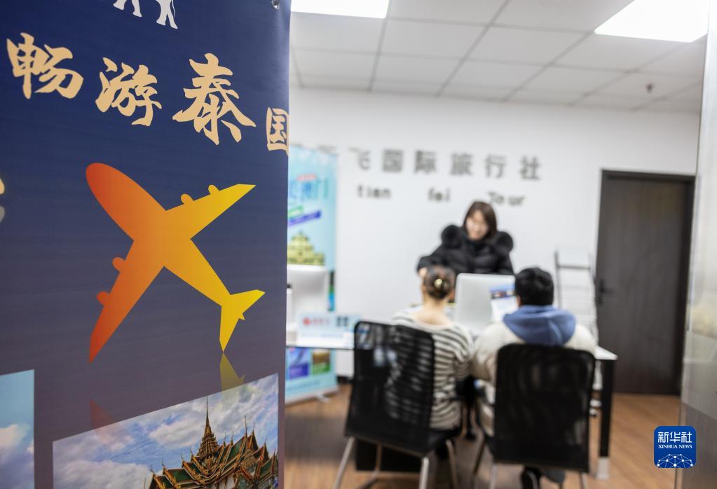 2月9日,市民在浙江省諸暨市一家旅游公司咨詢出境游的相關情況。